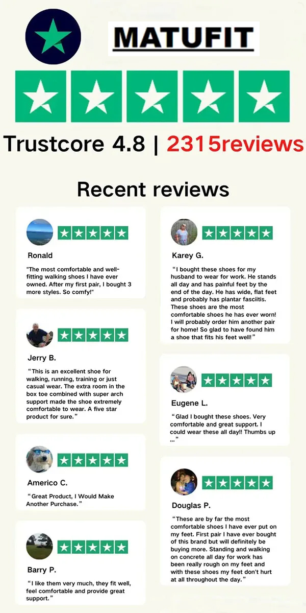 GUARANTEED COMFORT! See for yourself why Matufit shoes are regarded by millions as the MOST COMFORTABLE orthotic shoes. Walk COMFORTABLY.