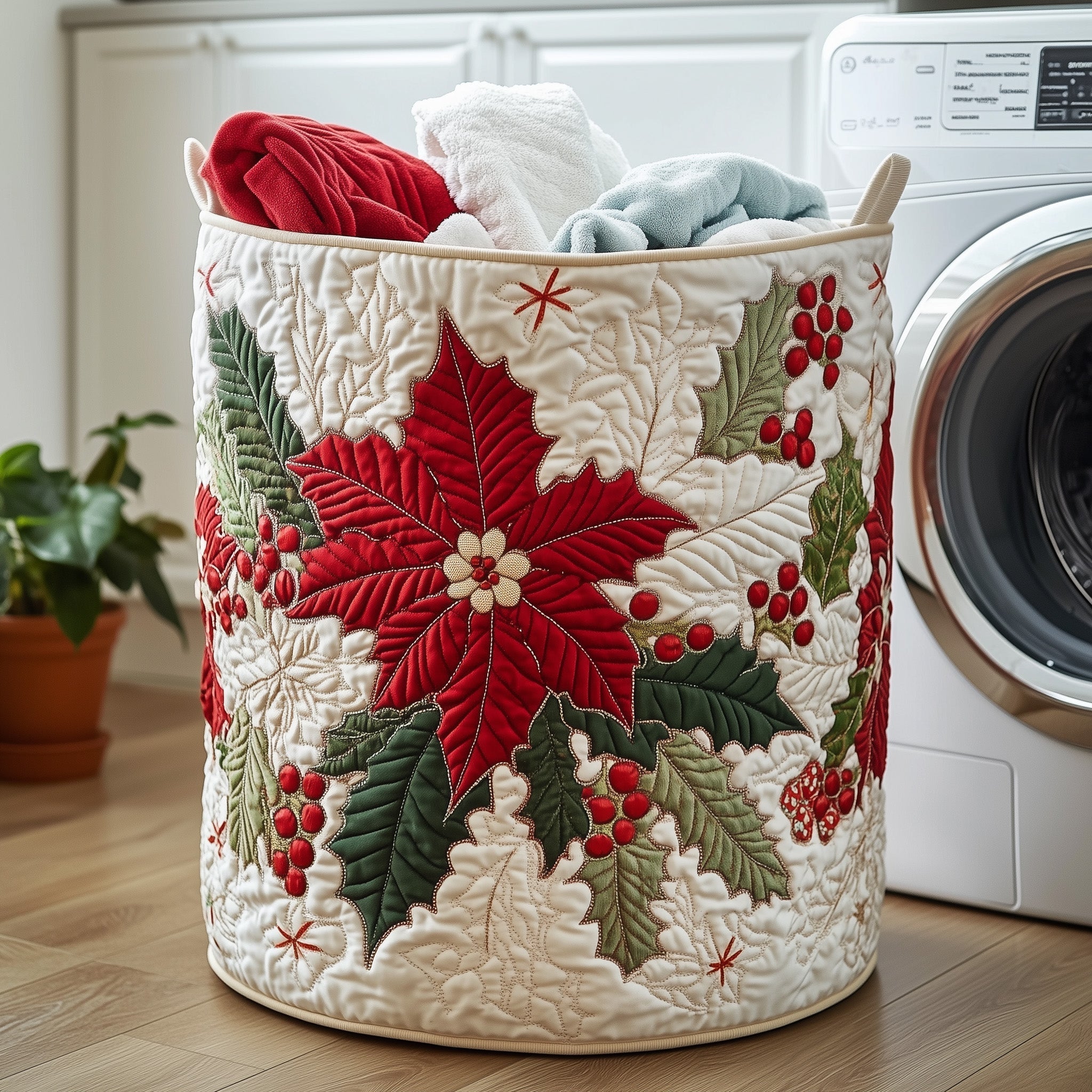 Poinsettia Spirit Quilted Laundry Basket GFTOHD10188